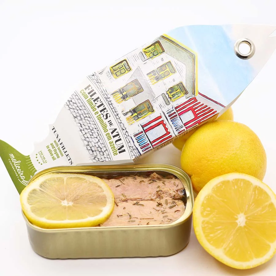 Tuna (65%); olive oil (26%); lemon (8%); thyme and salt.