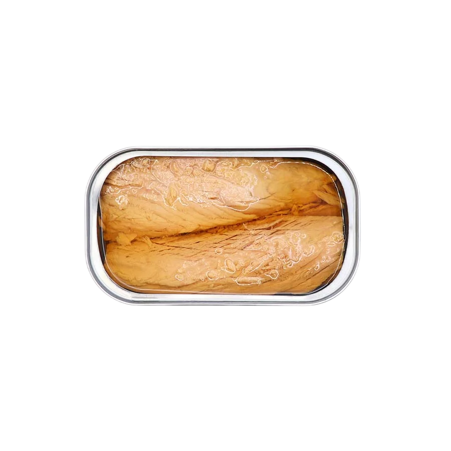 After being carefully selected and prepared, the Tuna Fillets are cooked. They are then meticulously hand-packed into tins by our skilled fishmongers, with half a slice of lemon and a few fresh thyme leaves added, all generously immersed in olive oil.